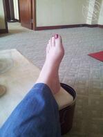 第一张照片就是我喜欢她的原因 我很少关注女人的脚 但是她的脚让我看着喜欢 是有一次我和邻居姐姐刚做完爱 点餐吃饭 然后我看视频 邻居姐姐和她聊天 然后这位清清姐发给邻居姐姐一个照片就是下面第这张 说在家刚涂完指甲 想下午去淘宝城 问邻居姐姐去不去 我就说 可以可以 邻居姐姐白了我一眼 说她闷骚 你小心点 我说是小心点别让她怀孕吗 哈哈 邻居姐姐打了我一下 因为我曾经让邻居姐姐怀过两次 有一次不确认是我还是她同学 因为就隔天的事 扯远了
